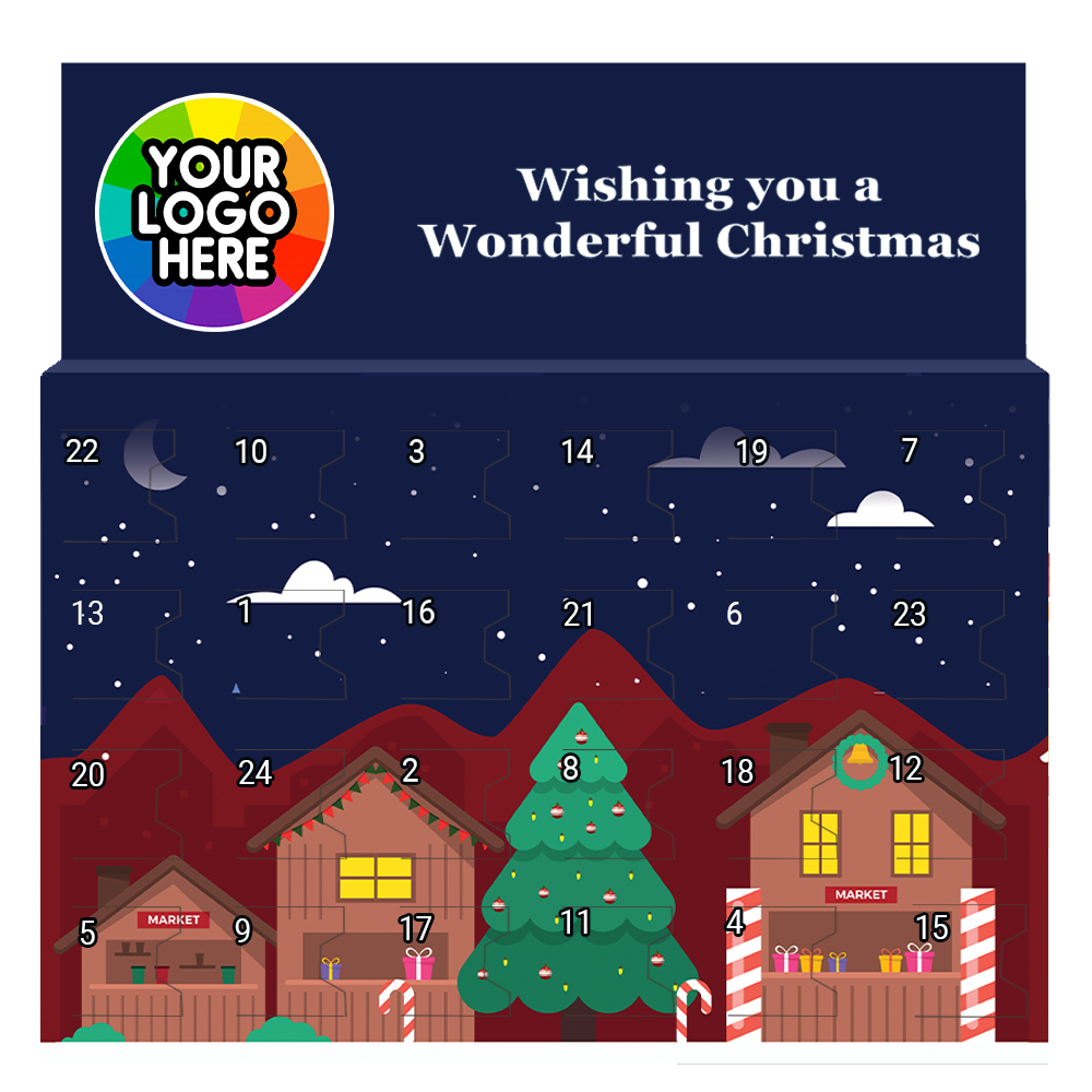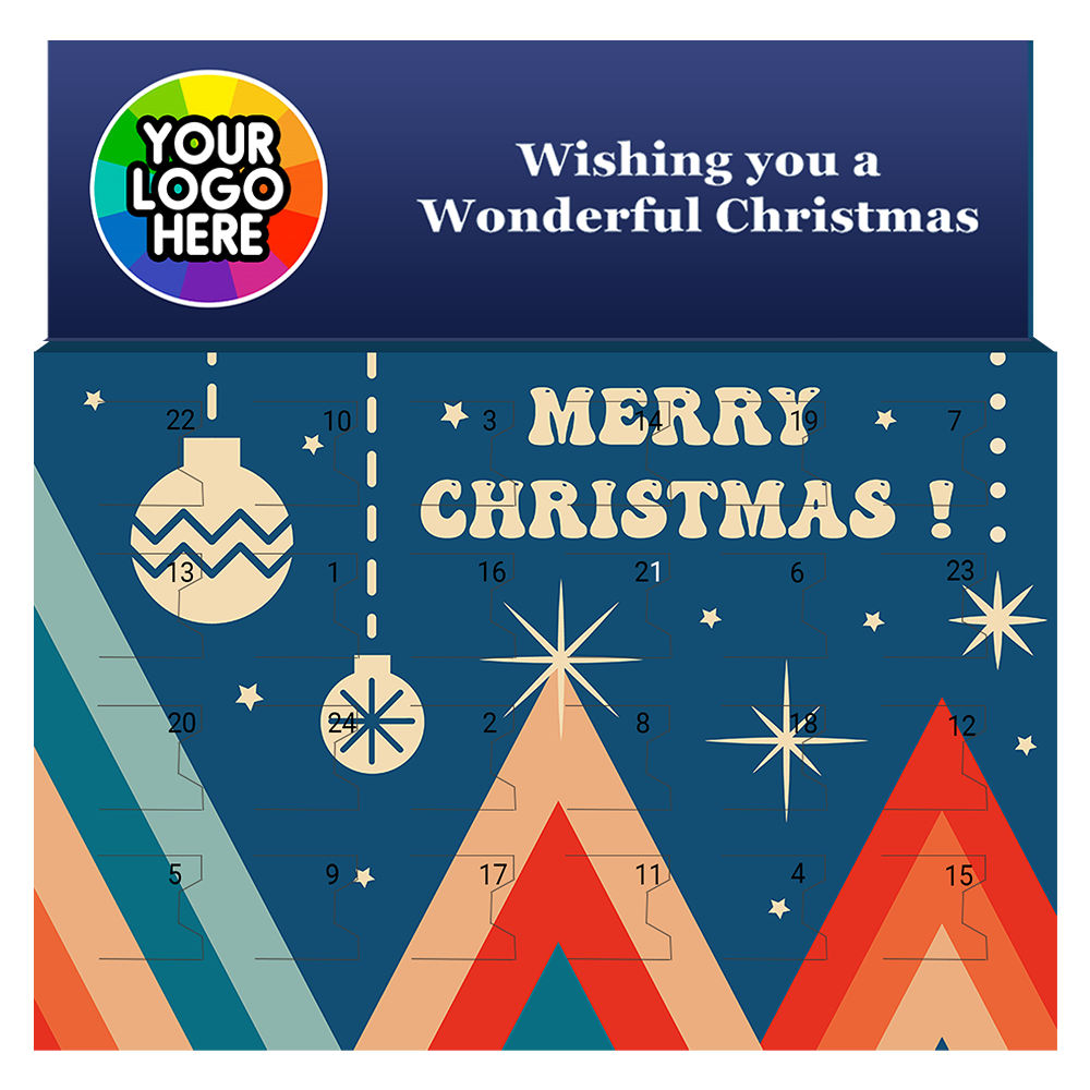 Corporate Advent Calendars: A mix of two festive designs, with the ability to customise the top section with your logo.