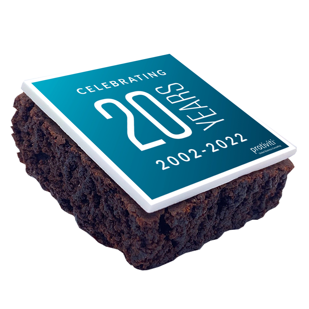 Logo Brownies: Fresh baked branded corporate brownies, topped with a 5cm square edible logo image. Wrapped Individually in ECO Friendly film.