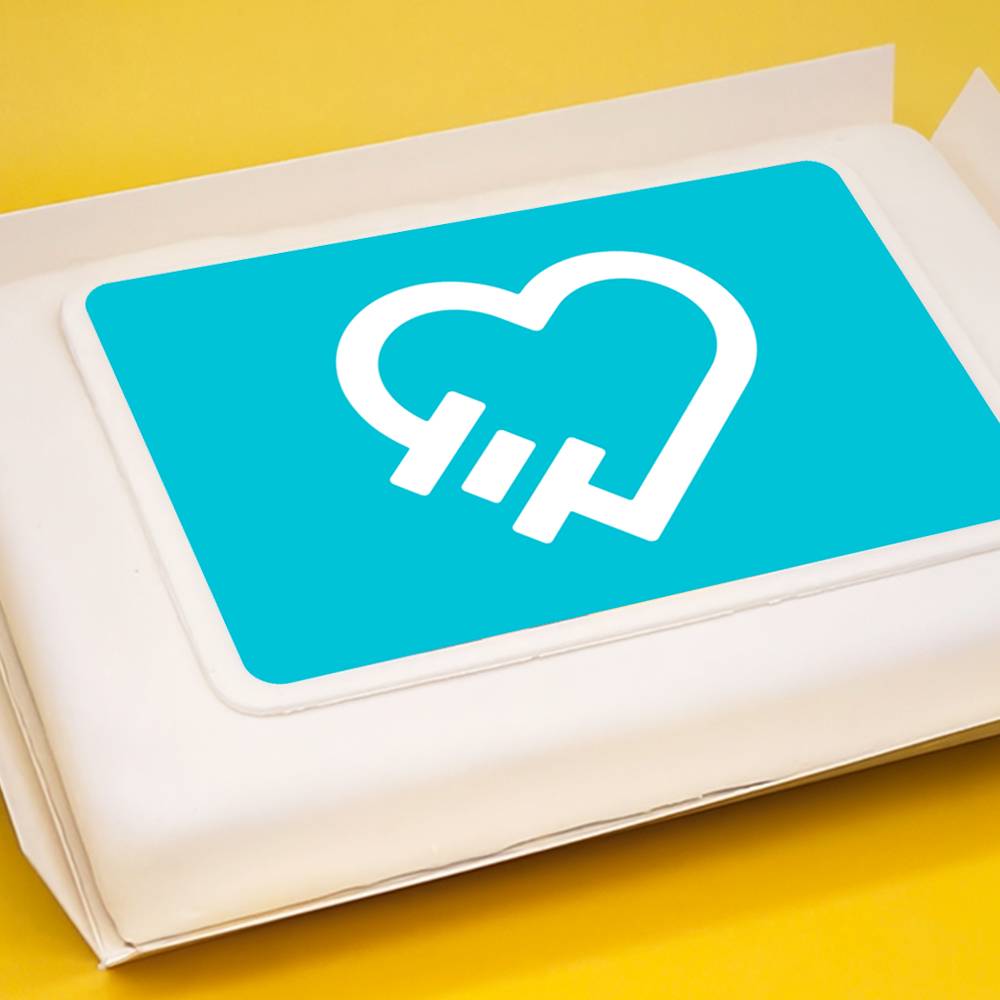 Branded Cake: Our 20 Portion Cakes are the ideal solution for a cost-effective small team celebration! 23 x 15 x 3cm. Perfecting for Royal Mail low cost delivery. Portion size based on a 2″ x 1″ party slice.