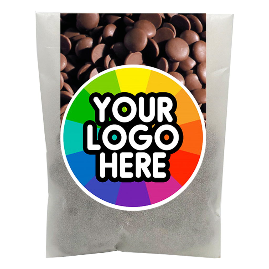 Milk Chocolate Buttons, packaged within a sticker-branded bag